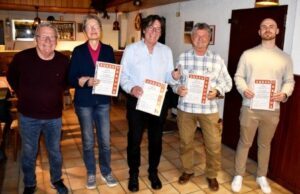 Für langjährige Mitgliedschaft wurden Peter Cloes 60 Jahre, Susanne Wenzel und Reimund Schmidt 50 Jahre, Sybille Schweitzer und Ricarda Genz 40 Jahre, Hans Werner Müller, Jannis Hammer und Bianca Groß für 25 Jahre Vereinszugehörigkeit geehrt.